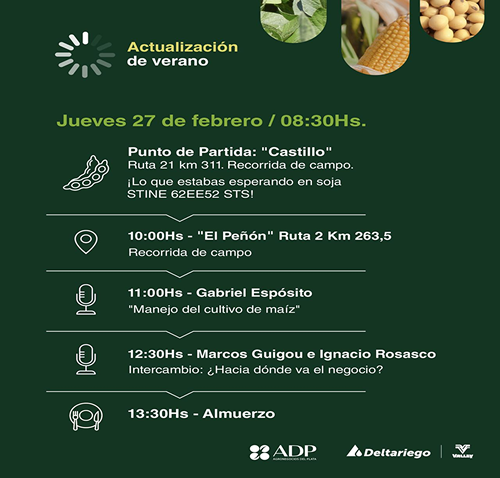 ADP-Agronegocios del Plata llevará a cabo la segunda edición de Actualización de Cultivos de Verano, un espacio de encuentro dirigido a productores y técnicos de todo el país para aprender, actualizarse y compartir experiencias sobre las últimas novedades del sector.