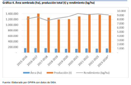 La zafra arrocera 2023/24 comenzó con la siembra de 150.000 hectáreas (aproximadamente), levemente por debajo de las expectativas de los productores, debido a la llegada tardía de las lluvias que permitieron recomponer las represas. Sin embargo, se sembró en la ventana óptima de siembra y, si bien el año Niño tiene menos días de radiación solar, los cultivos en general vienen con un buen desarrollo.