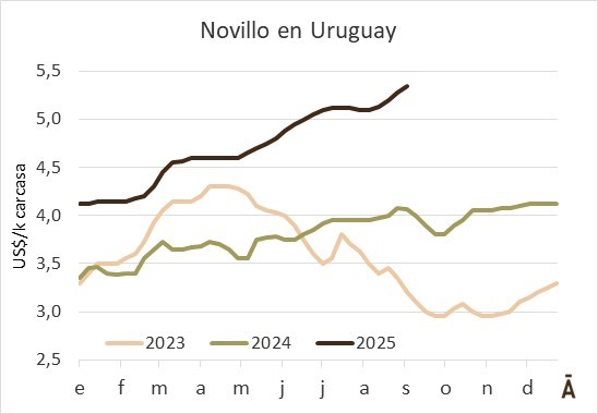 Los novillos especiales se pagan US$ 5,30-5,35 el kilo carcasa; como siempre, se hacen operaciones algunos centavos por encima, pero son casos esporádicos. Para las vacas, si son pesadas, se pagan US$ 5,05 o algún centavo adicional y en el caso de las vaquillonas el piso es de US$ 5,10 el kilo. Las entradas están dispares, con plantas comprando para la misma semana en que se concreta el negocio y otras que se estiran a 8-10 días.