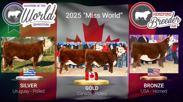 Por su parte, en Hereford, la Gran Campeona Polled de “Las Anitas de Alfonso y Genética Taipa” (RP 12084 Emperatriz), obtuvo la medalla de plata (7 puntos), quedando detrás de la mejor hembra canadiense (11 puntos) y por delante de su par estadounidense (4 puntos).