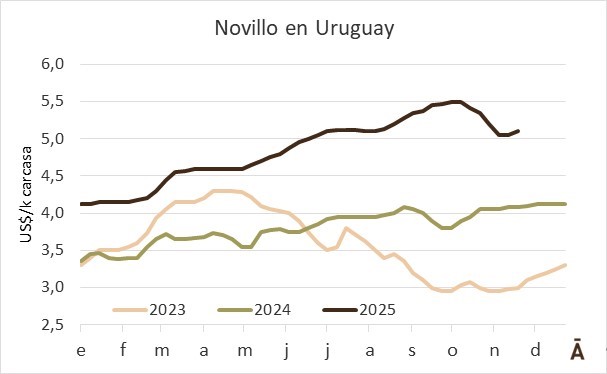 Luego de prácticamente un mes de corrección marcada en los valores, el mercado comenzó a mostrar otra tónica desde la semana pasada. “La realidad es que hoy el productor no está dispuesto a vender un novillo por debajo de US$ 5,00 y eso la industria la convalida”, afirmó el operador.