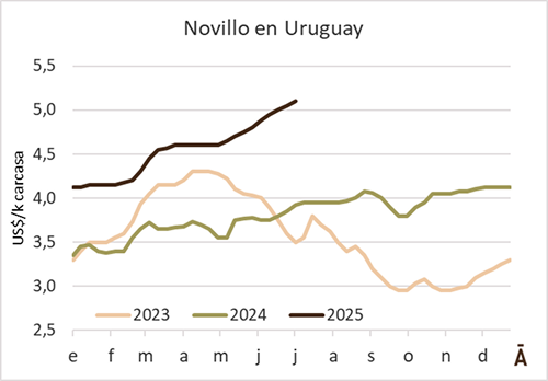 El valor medio del novillo a faena en los países del Mercosur sufrió una mínima corrección de 1 cent en la semana. El Índice Faxcarne del Novillo Mercosur se ubicó en US$ 4,01 el kilo carcasa.