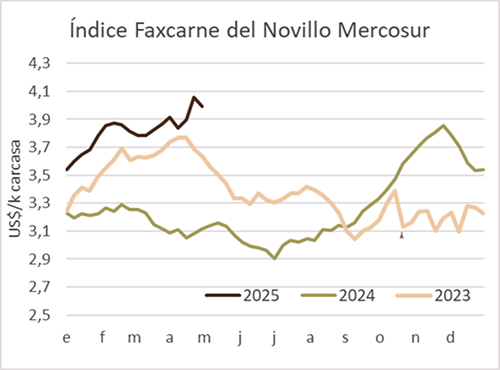 La debilidad del tipo de cambio en Argentina fue el principal argumento bajista para el valor medio del novillo en el Mercosur. El Índice Faxcarne perdió 7 cents en la semana a US$ 3,99 el kilo carcasa.