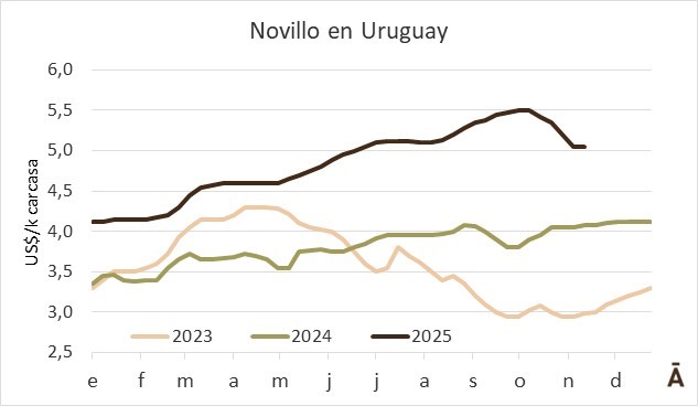 Con aumentos significativos en Brasil y Argentina, el valor medio del novillo en los países del Mercosur pegó un salto esta última semana al nivel más alto desde mayo de 2022. El Índice WBR del Novillo Mercosur subió 12 cents en la semana a US$ 4,27 el kilo carcasa.