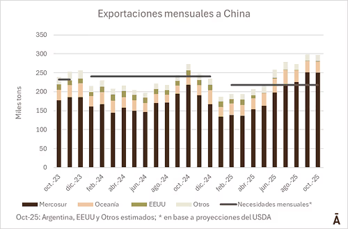 Las exportaciones de carne vacuna a China continuaron siendo voluminosas en octubre, lo que asegura que el ingreso del alimento al principal país importador del mundo seguirá siendo elevado en las próximas semanas.