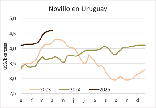 Donde el aumento fue consistente fue en Brasil y Paraguay. En ambos países la referencia aumentó 10 cents a US$ 3,51 y US$ 3,80 el kilo carcasa, respectivamente.