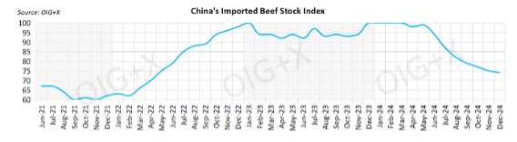 El volumen de carne vacuna importada mantenida en cámaras de frío en China mantuvo la tendencia descendente en diciembre, de acuerdo con información de la publicación OIG+X.