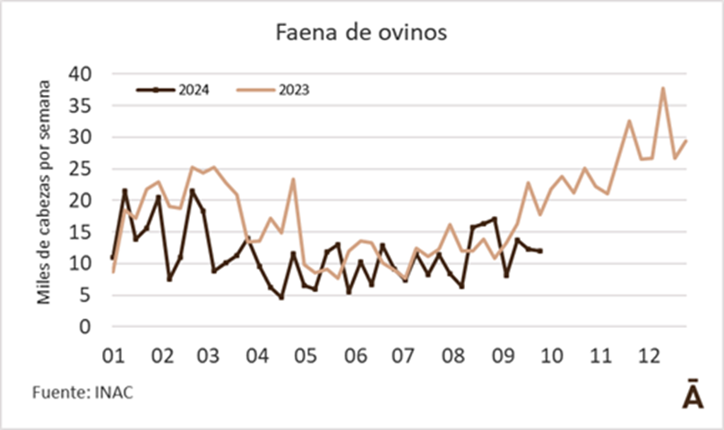 En lo que va del año al 27 de setiembre se faenaron 450.196 ovinos, con un descenso anual de 23,6%.