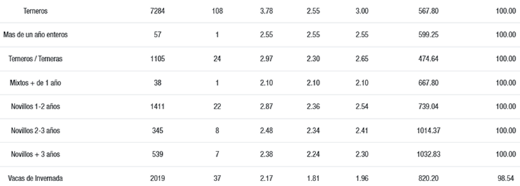 Tras la colocación de más de 7 mil terneros y 100% de ventas durante el primer día de actividad con un precio promedio de US$ 3,00 por kg (US$ 567 al bulto), este miércoles Plaza Rural se continuó con la escalera de novillos, que también registraron un 100% de ventas.
