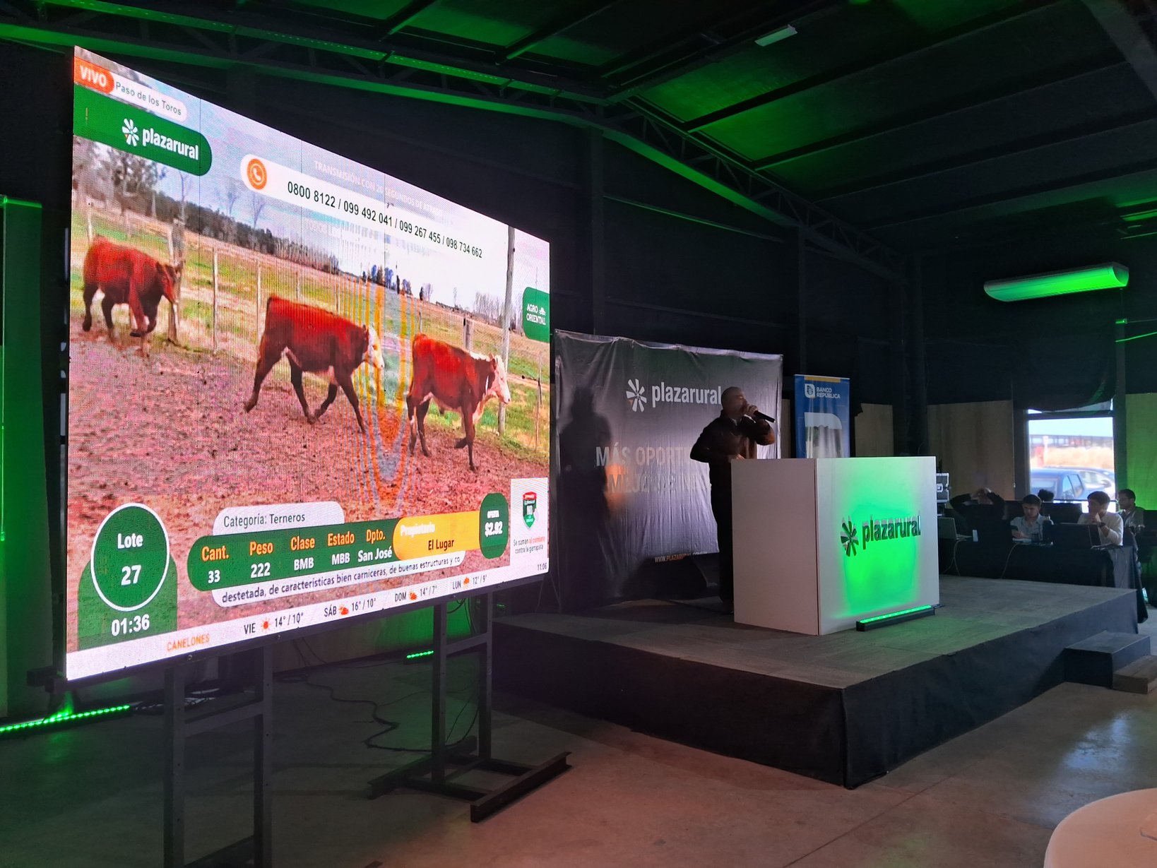 El consorcio Plaza Rural tuvo este miércoles su primer día de actividad con una comercialización muy fluida en prácticamente todas las categorías de la invernada. Los 2.619 terneros hicieron US$ 3,04 por kg en promedio (US$ 556 al bulto), con un porcentaje de ventas del 98%. En tanto, la vaca de invernada, la otra categoría más numerosa de la jornada (1.867 cabezas), hizo un promedio de US$ 2,03 por kg en pie (US$ 792 al bulto). La actividad del consorcio continúa este jueves con toda la escalera de vientres y terneras.