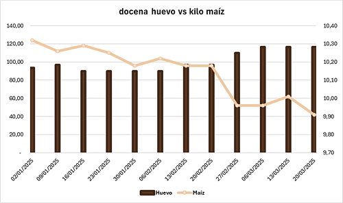 De acuerdo con los datos que aporta el Observatorio Granjero, de la Dirección General de la Granja (Digegra) y la Unidad Agroalimentaria Metropolitana (UAM), durante el 2025, continúa la escalada de precios del valor del huevo, tanto blanco como de color, a pesar de que, debido al aumento del dólar en la plaza local, tanto el maíz como la ración para ponedoras cedió en sus cotizaciones.